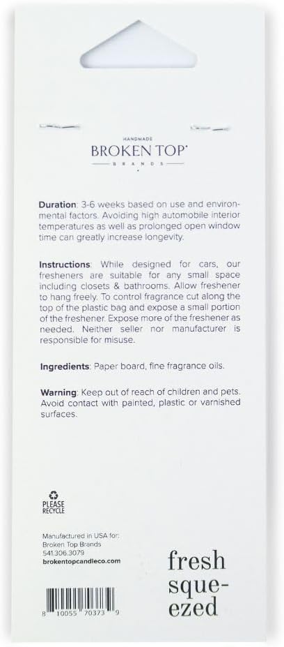 - Adjustable Fragrance Intensity: Easily control the fragrance level by cutting the plastic bag and exposing a small portion of the freshener. Increase exposure as needed for a stronger scent.