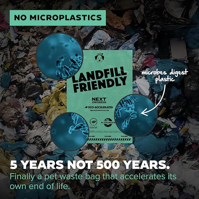 - Landfill Friendly: The only bags designed to be landfill friendly, our pet poop bags are engineered to accelerate the end of the life cycle for plastics in environments such as landfills, oceans, and soil