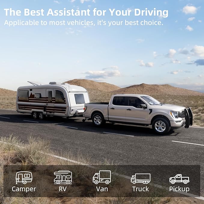 - Dual-antenna & 2.4GHZ Wireless Signal : Utilizing advanced 2.4GHz wireless signal technology and dual antenna design, it provides a more reliable and stable signal with no delay and no lag in images. With a reception range of up to 200ft in the open, it shows you your surroundings in real time, even at high speeds of 102 mph.Suits for car/SUV/camper/truck/voyager RV/jeep truck/pickup/horse trailer/fifth wheel/van/tractor/boat ect.