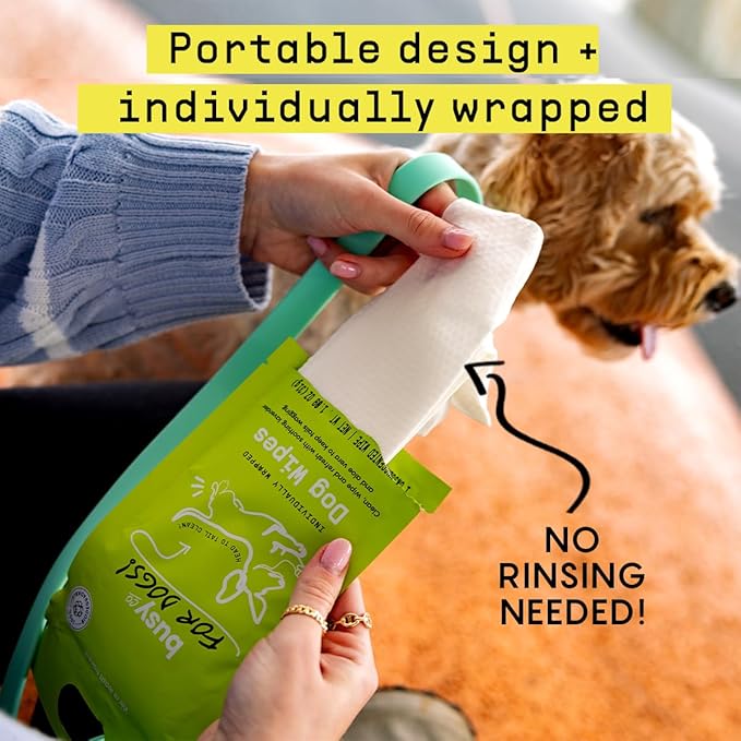 Busy Co. - Hypoallergenic Dog Wipes, Cleaning and Odor Control Grooming Wipes for Paws, Body, and Butt, Perfect for Puppy and Adult Dogs, Individually Wrapped, Unscented (Unscented, 20 Grooming Wipes)