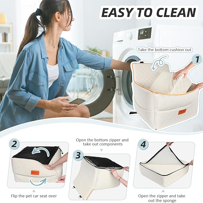 - Multi-functional Use: The small dog car seat is not only suitable for vehicles, but can also be used as a dog bed at home, outdoors or in a tent, providing your dog with a comfortable resting space anwhere. It has a removable and washable cover, simply open the zipper and take out the sponge to clean the cover. Please note that the inner sponge is not washable