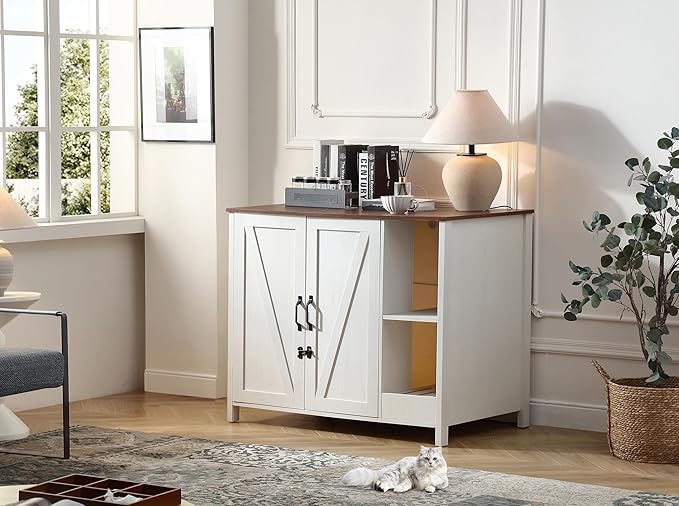 Cat Litter Robot Enclosure,for Placing Litter Robot 3/4,Power Outlet and Dog-Proof Shelf for Litter Robot Cabinet,Litter Collector for Automatic Litter Box Enclosure,Antique White