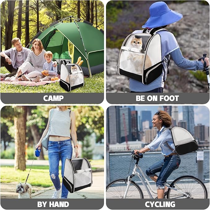 - Ventilated Mesh and Comfortable: Three-sided PVC mesh design ensures excellent air circulation and visibility, you can clearly view the status of pets inside the bag, and pets can also observe the outside. And this cat carrier backpack is firmly structured, providing ample room for your pet to move around
