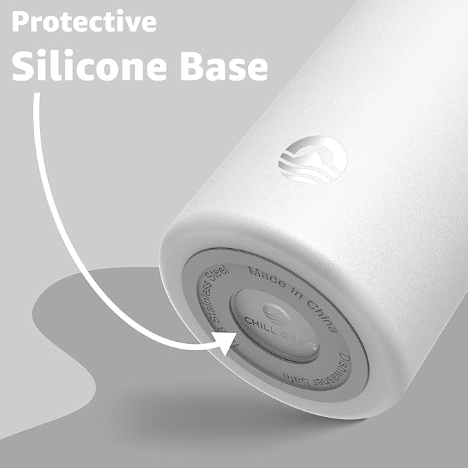 Chill Oasis Water Bottle | Compatible With Popular Flavor Cartridges | BPA Free, Leak Proof, Double-Walled Vacuum Insulated Stainless Steel, and Dishwasher Safe | Cold for 24 Hours (White, 22oz)