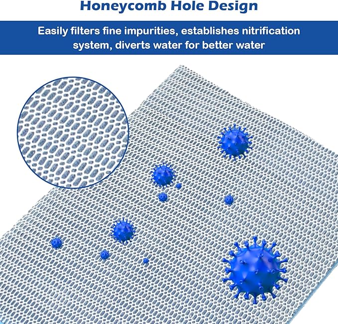 - Improve Water Quality:Filter floss for fish tank is designed with upgraded honeycomb shape, which is highly permeable,can filter impurities,cultivate beneficial substances,providing clean water and a safe living environment for fish and other aquatic organisms
