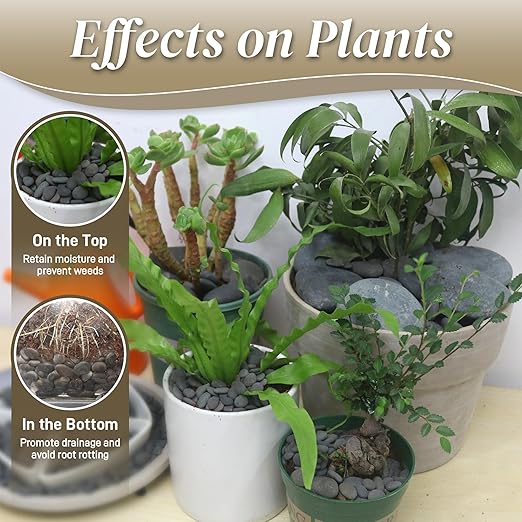 - 【Benefits for Plants】Covering pots with plant rocks for pots indoor enhances plant aesthetics, regulates soil moisture, and prevents weeds. Placing succulent rocks at the bottom of pots promotes drainage and prevents root rot.