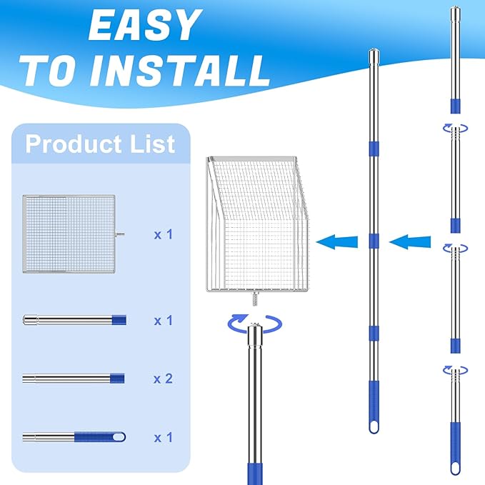 - 4-in-1 Adjustable Handle for Flexible Cleaning: The stainless steel handle features four adjustable lengths: 20.4", 29.7", 39.3", and 48.9", catering to different cleaning tasks and user heights. Ideal for cleaning chicken litter, rabbit droppings, and cat boxes, as well as collecting beach shells.