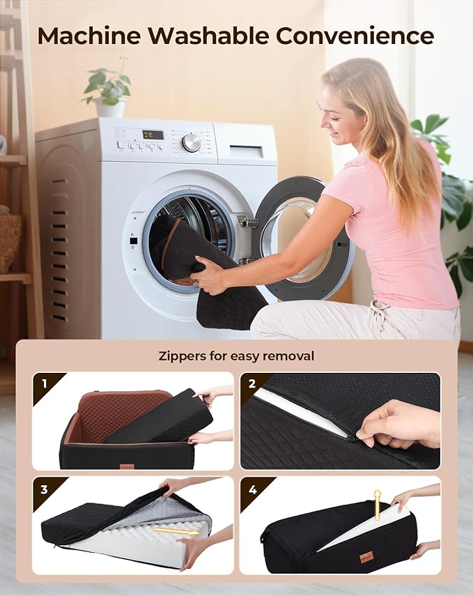 - Comfortable & Convenient: Crafted with ultra-soft short plush fabric, this dog booster car seat keeps your dog cozy, and its removable, machine-washable seat cover makes cleanup a breeze. The thickened high-density egg-shaped foam cushion offers exceptional support, gently easing dog's joint pressure, while effectively reducing the impact of road bumps for a smooth ride.