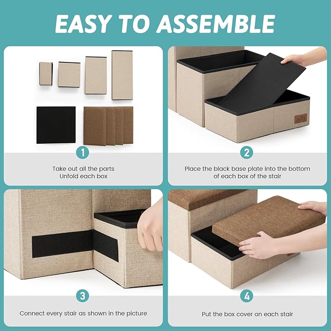 - Easy Assembly & Space-Saving Portability: Setting up is a breeze with our step-by-step guide and intuitive linking system. When not in use, simply fold the stairs for compact storage. Whether at home or on the go, these stairs are designed for convenience and portability.