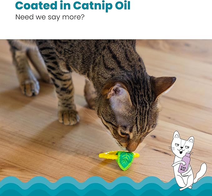 - TEXTURED FABRIC LEAF FOR TEETH CLEANING: the attached dental mesh fabric leaf helps reduce buildup as your cat bites and chews, supporting clean and polished teeth