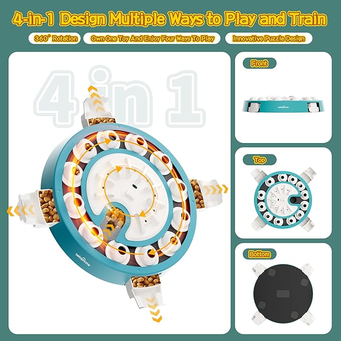 - Slow Eating for Better Digestion โ This 4-in-1 dog puzzle feeder slows down eating speed, helping reduce choking, vomiting, and digestive issues. Designed as an interactive dog puzzle toy, it supports healthier mealtime habits while turning feeding into an engaging challenge.