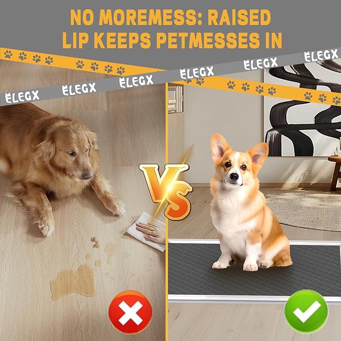 ELEGX Pee Pads Tray 30 X 36 Inches, Silicone Dog Bedpan Tray, High Edge Puppy Pad Holder Tray for Easy to Clean and Spill Free Dog Bedpan Training Pad Tray with Fixing Buckle