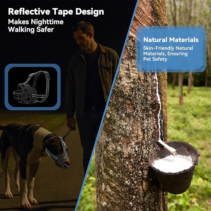 - Eco-Friendly Material for Safety and Durability: Our Dog Muzzle for Large Dogs is Crafted from Non-toxic, Environmentally Friendly TPR Silicone. This Lightweight yet Durable Material Is Odorless, Soft to the Touch, And Sturdy Enough to Resist Deformation, Ensuring Long-Lasting Use While Prioritizing Your Pet’s Safety