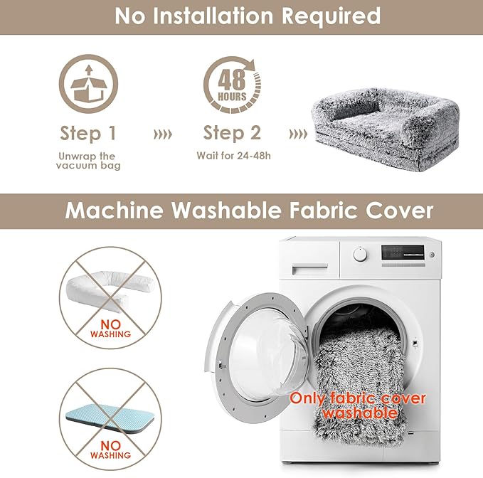 - EASY TO REMOVE AND CLEAN: Human Giant Dog Bed requires no installation. Simply unwrap the vacuum bag and wait for it to unfold. Please pat and shake it before use until it is completely fluffy. The faux fur cover can be washed in the washing machine at a low temperature. The bolster filling is not washable and should be removed before washing.