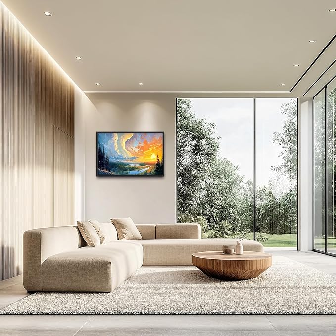 Framed Large Sunrise Wall Art for Living Room, Oversized Sunrise Wall Decor Forest Lake Landscape Canvas Print Natural Picture Home Decoration for Bedroom Living Room Office 36"x24"