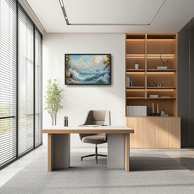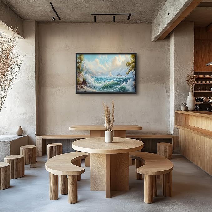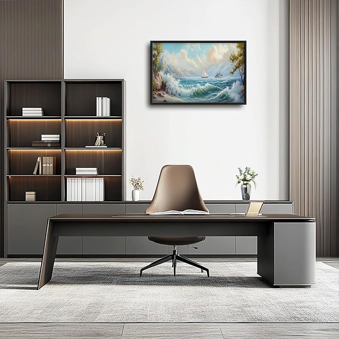 Framed Large Sailboat Wall Art for Living Room, Oversized Sea Coastal Wall Decor Beach Nautical Canvas Painting Seascape Pictures Home Decoration for Living Room Bedroom Office 36"x24"