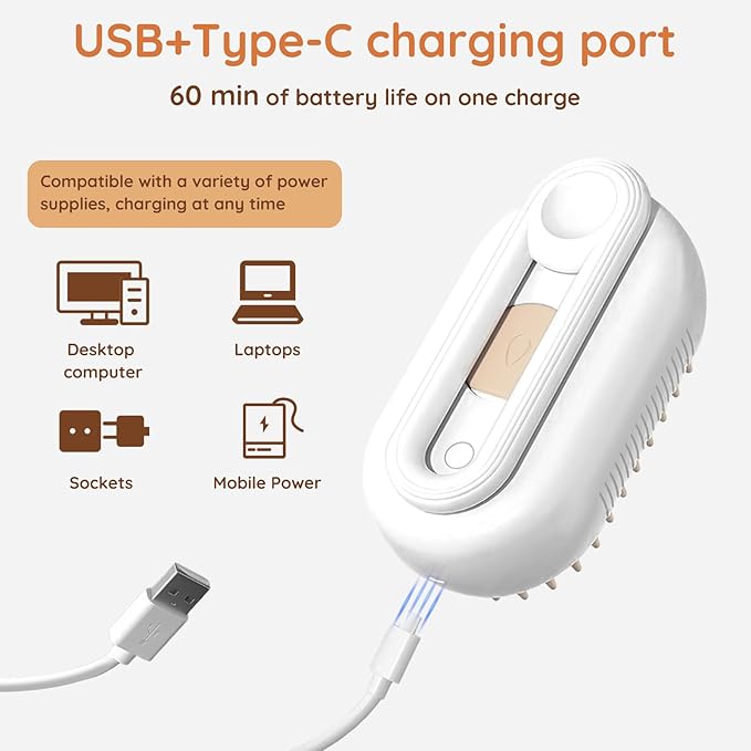 - [Long-Lasting Battery Life, Groom Anytime, Anywhere] With a built-in long-lasting battery, a single charge lasts up to a week. Whether for daily grooming at home or urgent needs during travel, the GKZ Cat Brush & Cat Steam Brush is the ideal choice for pet grooming. Keep your pet in top condition whenever and wherever, enjoying health and happiness.