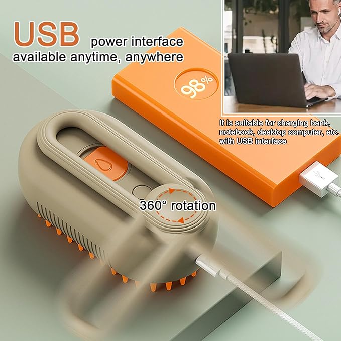 - 【SPA-Level Grooming Experience】 Redefine pet care with our 4-in-1 steam brush: effortlessly detangles knots, deeply cleanses dirt and dander, controls static, and delivers a soothing massage. The gentle micron-level steam softens tough mats, while the soft silicone brush head pampers your pet's skin—turning grooming into a relaxing ritual. Perfect for anxious cats, it strengthens your bond through stress-free sessions, leaving coats shiny and smooth.