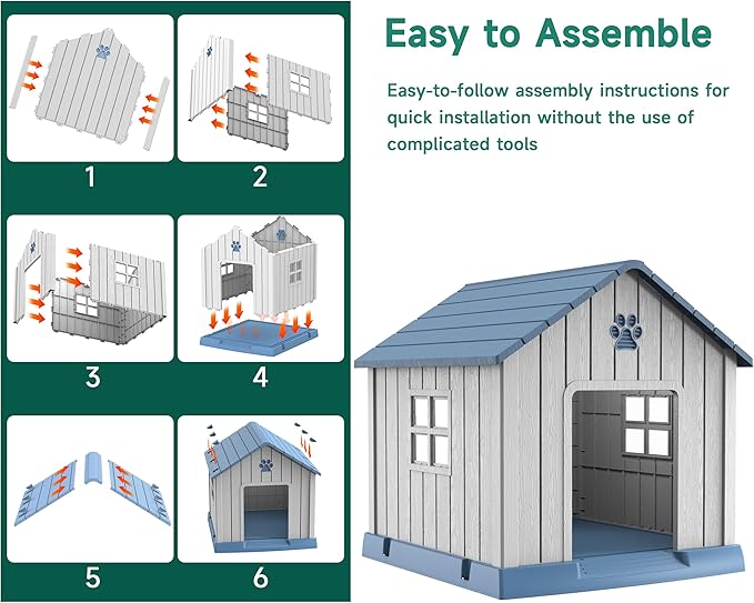 - EASY TO INSTALL AND CLEAN: Comes with all the accessories, follow the step-by-step instructions and an adult can assemble the dog house in less than 20 minutes. Simple to clean, just remove the roof for easy access to the inside of the dog house.