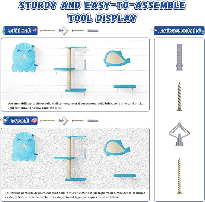 - Easy to Install :This cat wall set has illustrated and written instructions, very easy to install, you can place any arrangement according to your own ideas, and at the same time, you can match some parts of the marine factor to form a warm and cozy spatial environment