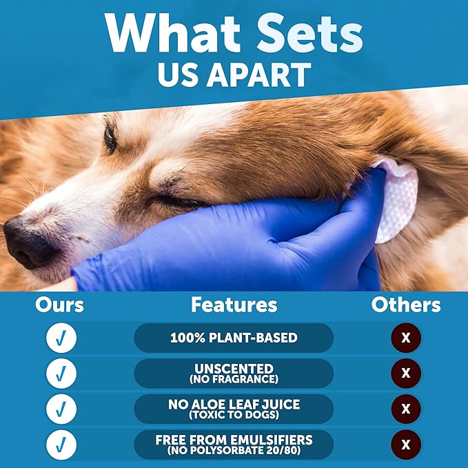 - Unscented, Plant-Based Formula with Coconut Oil: Artullano dog ear cleaner wipes feature a 100% plant-based formula with coconut oil to naturally clean and moisturize. Unperfumed and dye-free, they're ideal pet wipes for dogs