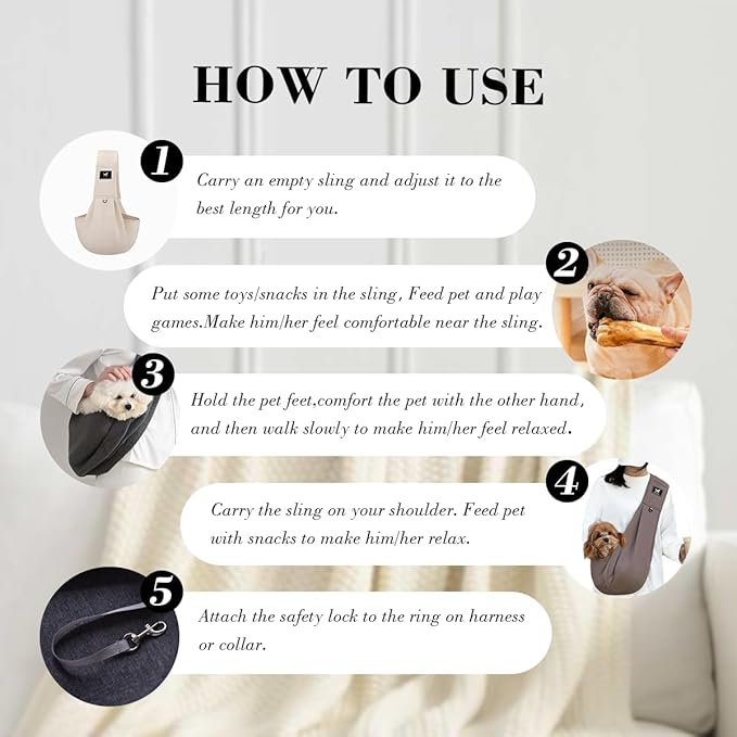 Dog & Cat Carrier Sling, Adjustable Soft Padded Shoulder Puppy Carrier, Hands-Free Dog Carrier Bag with Double Safety Buckles Premium Material for Outdoor Travel (Apricot, L)