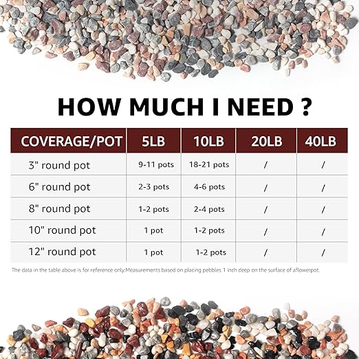 - Promotes Plant Health: Beyond their decorative appeal, these stones enhance soil drainage, prevent root rot, and improve plant health. When used as a top layer for planters, they help retain soil moisture, reduce soil splashing, and keep planters neat. These stones are also effective in creating stable drainage layers, reducing soil erosion, and supporting healthy plant growth in gardens and flower beds