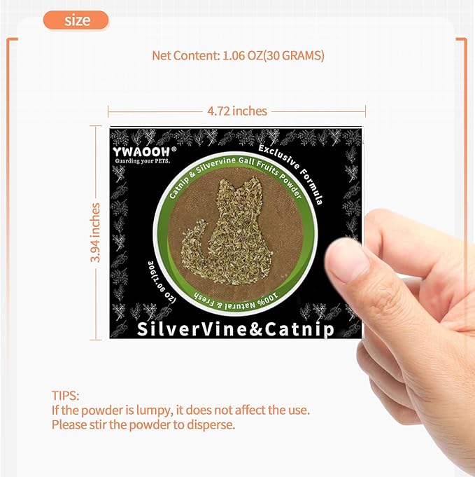 Catnip & Silvervine Powder β 30g Blend of Silvervine Gall Fruit & Catnip, Non-Addictive, for All Cat Ages, Multi-Use with Toys, Scratchers & Protecting Furniture, with 5 Little Pouches