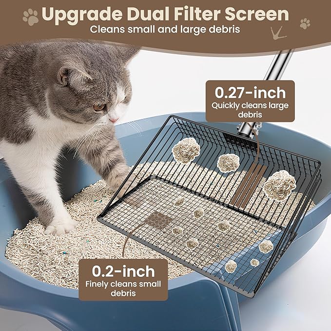 - 10 inch Large Metal Litter Scoop: The Sifter Shovel head width size is 10 inches, can collect more chicken manure, sand, hay and other debris, save time and energy.It can be used as a chicken coop rake shovel as well as cat litter shovel, beach sand shovel, garden shovel, horse poop scooper, etc.