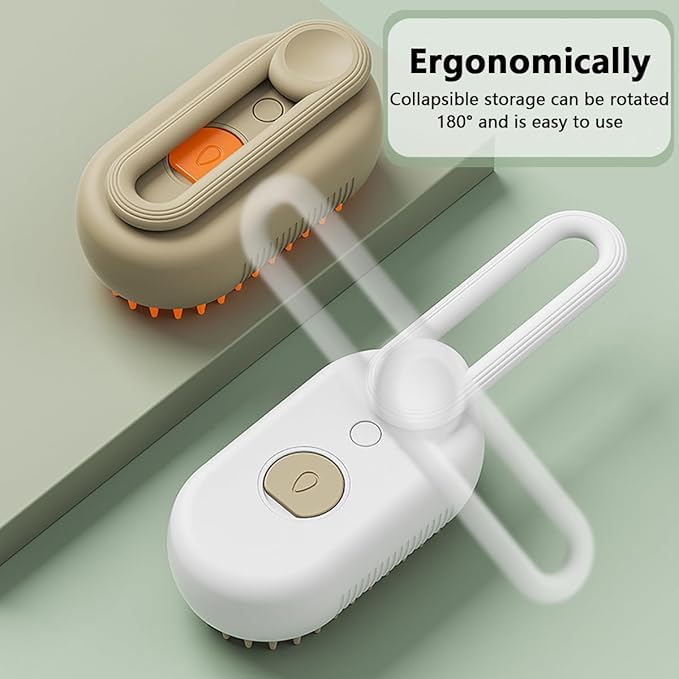 - Ergonomic Pet-Friendly Design: Ergonomic Pet-Friendly Design: Featuring a 360° rotatable handle and non-slip teeth for secure grip, this brush adapts to your cat’s natural movements while minimizing grooming stress. The removable brush head cleans effortlessly under water, switch off the vibration mode (which produces vibration sound) for noise-sensitive pets, retaining steam and brushing functions. ,it calms anxious cats during daily routines and maintains tangle-free coats without overwhelming skittish animals.