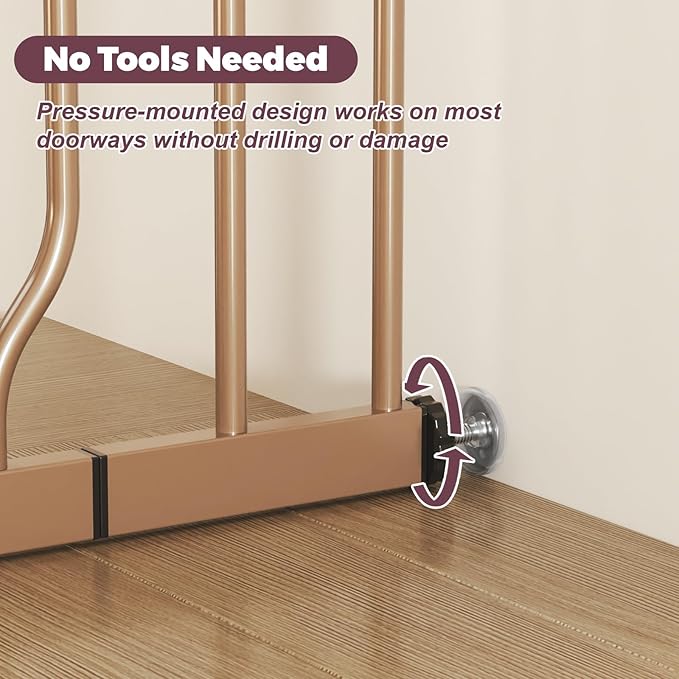 - Tool-Free Installation: The pressure-mounted gate for baby & pet provides a secure hold while protecting your walls and doorways from damage, ideal for renters and hassle-free setups. The pet gate indoor offers a quick, temporary solution that's both safe and convenient.