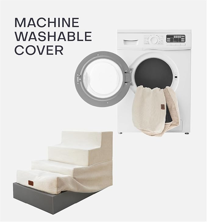 - 【Easy to Clean】: The dog stairs feature a removable, machine washable cover for effortless cleaning. Simply take out the foam core for washing; however, please avoid cleaning the foam and board. After removing from the compression bag, allow 24-48 hours for the foam to fully expand before use for optimal comfort