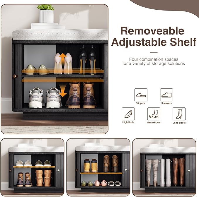 - Space-saving Sliding Door Design: When you sit on this entry way bench to change your shoes, the sliding door allows you to open and close it more conveniently to pick up and place your items, while keeping them away from dust and pets