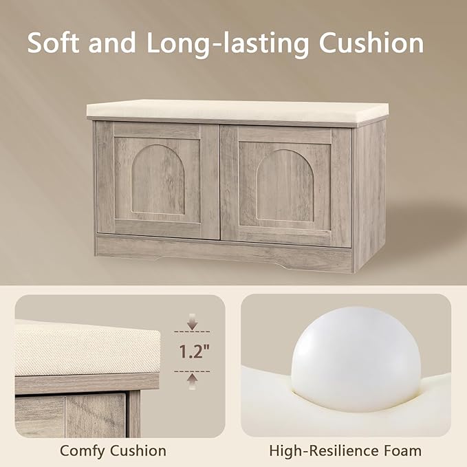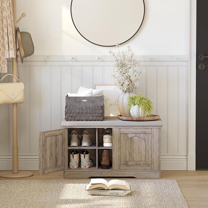 - 【Effortless Push-to-open Door 】Feature a fully enclosed design with a push-to-open mechanism, keeping shoes clean and tidy while avoiding accidental bumps against door handles during use. Reasonable height and soft cushion let you change shoes by sitting on the bench more comfortable without bending down or squatting