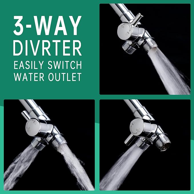 - 3. Durable Metal Diverter: Equipped with a corrosion-resistant, all-metal diverter. It ensures smooth switching between the showerhead and other water outlets in your bathroom, providing hassle-free operation and long-lasting durability