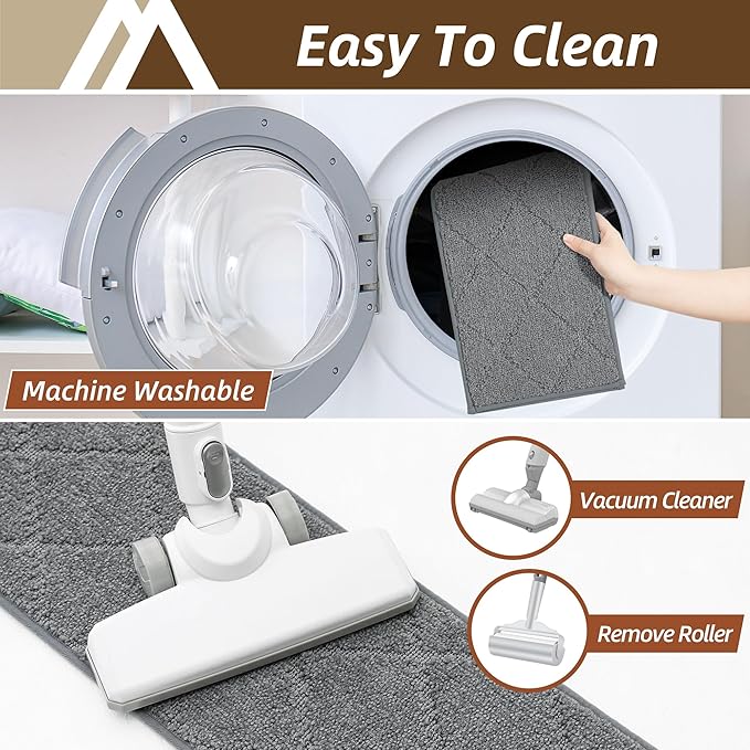 - Washable and Easy Removal:If you need to reposition or remove stair runners,it will not leave any residue, protecting your staircase from damage.When stair rugs get dirty, simply vacuum to clean up dust, scraps and pet hair.Or throw stair treads in the washing machine. After washing them in water, it is recommended to dry them in the shade, not in the dryer or in the sun