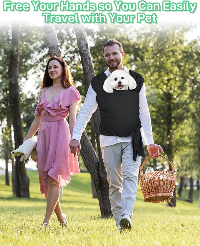 Dog Sling Swaddle Carrier for Small Dog, Cat Front Carriers for Small Pet up to 20lbs, Puppy Pouch with Adjustable Straps, Hands Free Pet Sling, Anti Anxiety Puppy Sling (Black)