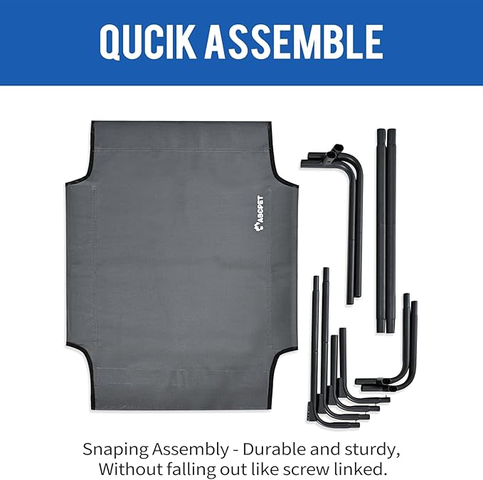 Elevated Dog Beds Extra Large Raised Dog Cots Outdoor Dog Bed Waterproof Pet Cots Stable and Easy Assembly, Teslin Fabric with 1.2mm Thick Iron Frame, Breathable, Ultra-Sturdy,Grey, 54*37*8.7