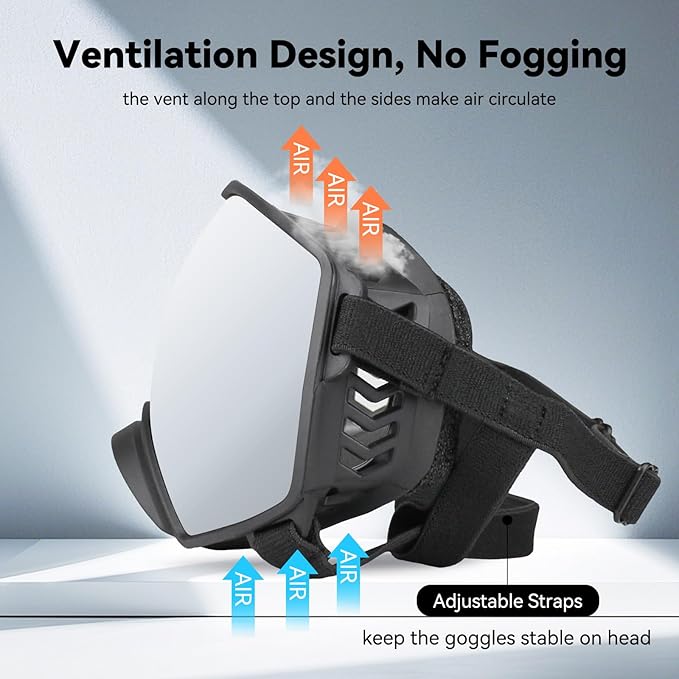 - Adjustable nylon strap allows you to adjust dog goggles according to the size of the dog without giving the dog a sense of restraint. Compared to other dog sunglasses, our products are designed with larger and more ventilation holes, it can better reduce the generation of steam and fog, offering further protect the safety of the dog
