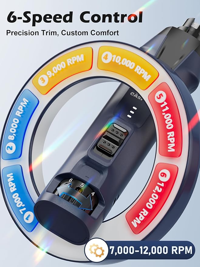 - 【6-Speed Control for Custom Comfort】Adjustable speeds from 7,000 to 12,000 RPM allow you to tailor grinding power based on your pet’s nail size and hardness. Use higher speeds for quick shaping, and lower speeds for precise work near the quick, reducing the risk of discomfort or bleeding. Skip the groomer bills—get smooth, salon-quality results at home with Casfuy dog nail grinder.