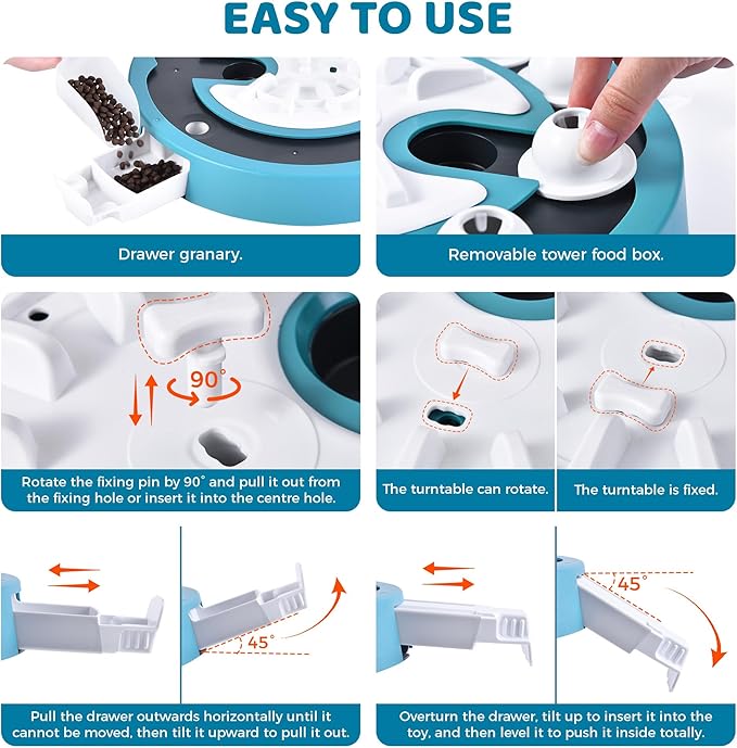 - Adjustable Challenges Levels - This puzzle toy can support multiple levels, from very easy to difficult, so you don’t have to buy multiple puzzle toys. This puzzle can alongside your dog's understanding, gradually increasing the challenge.