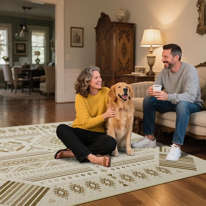 FXW Washable Pee Pads for Dogs, Puppy Pads with Super Absorbent, Specifically Designed for FXW Rollick/Homeplus 24 inch 8 Panels Dog Playpen, 63" Square, Khaki Geometric, 1 Pack
