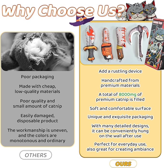 - Cartoon Horror Theme: Different shapes of kitten toys are designed to look like knives, your cat will love these fun and adorable designs, inspire your cat's natural hunting instincts, every pounce is a thrilling adventure, full of endless fun