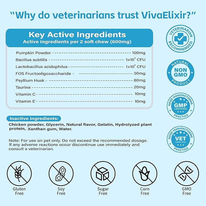 - Veterinarian-Backed & Daily Friendly – Chicken-flavored chewable tablets are palatable, safe for long-term use, and conveniently dosed at 120 tablets per bottle, providing lasting digestive and immune support.