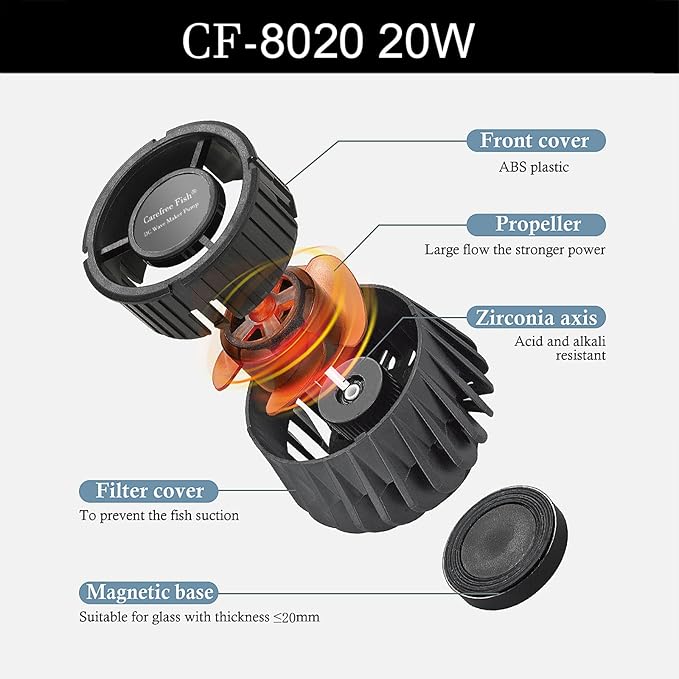 - 【Super strong magnetic force】Can be used for 20cm/8Inch thickness fish tank wall.When installing the wave maker, turn off the power and install it underwater.