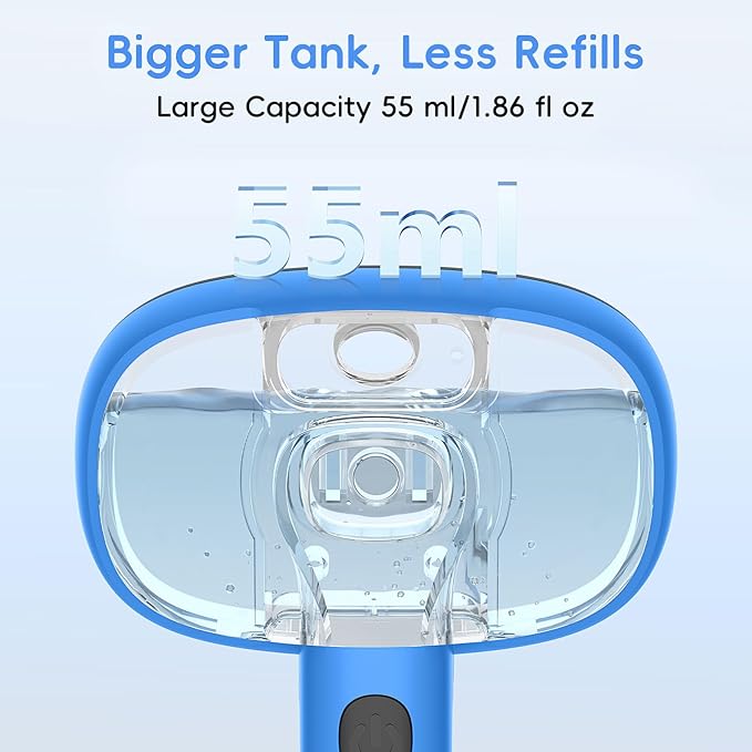 - 【Spray Function】 This pet steam brush features an spray function.Simply fill the water tank with water or a leave-in solution, turn on the spray switch, and fine, even mist will be released. Our cat brush holds triple the water of regular cat hair brushes with crystal-clear visibility to monitor levels at a glance. This mist effectively reduces static and flyaway fur during brushing, making the process smoother and more comfortable. 【But Note it】Our spray brush only turns water into mist, not heating water into hot vapor.