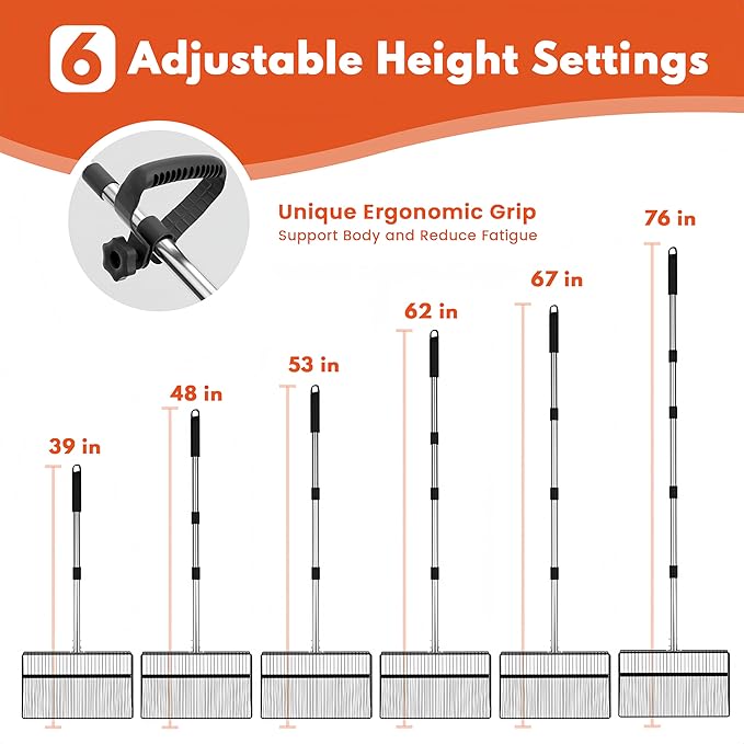 - Back & Knee Friendly Design: The 68-inch handle reduces strain by 60% for maximum comfort. At just 2.3 lbs with auxiliary handles that double your efficiency, this lightweight rake makes cleaning chicken coops (20+ birds), goat houses, rabbit sheds, or cow pens significantly easier
