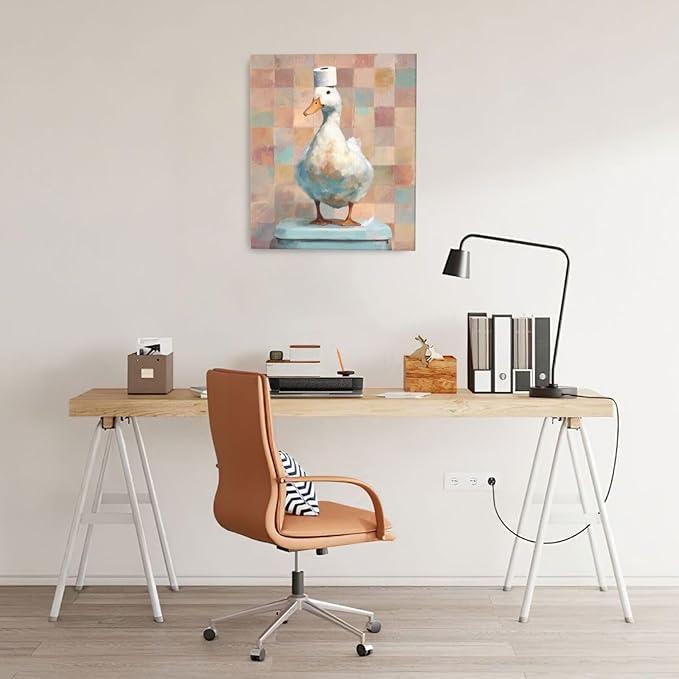 Funny Duck Bathroom Wall Art Cute Duck on Toilet Canvas Wall Decor Funny Quirky Farm Animal Pictures Painting Print Framed Artwork Decorations Gifts for Bathroom 20"x24"