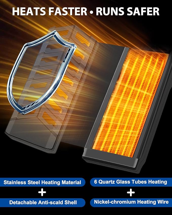 - ✦【Smart PID Chip – Saves Energy & Heats Faster】The intelligent PID system adjusts power automatically—full power for quick heating, then reduces energy to maintain temperature. Saves 40% more electricity than traditional heaters while keeping temperatures stable.