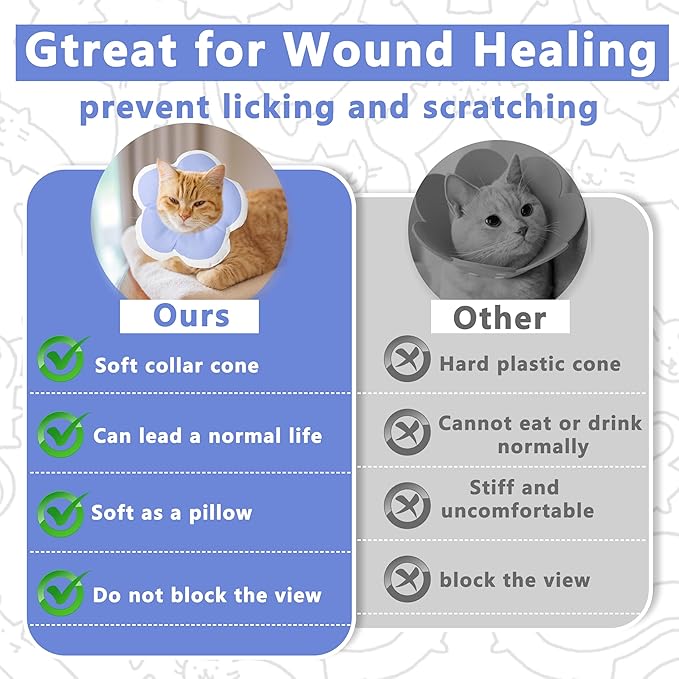 - No impact on daily life: The soft cat cone collar is lightweight, causing no pressure when worn by kittens. It doesn't obstruct their vision, allowing them to eat, drink, and play freely. This unique flower shape cat cone is more like a pet ornament, for pet party, birthday, holiday dress-up,Christmas, it offers you a happy mood.